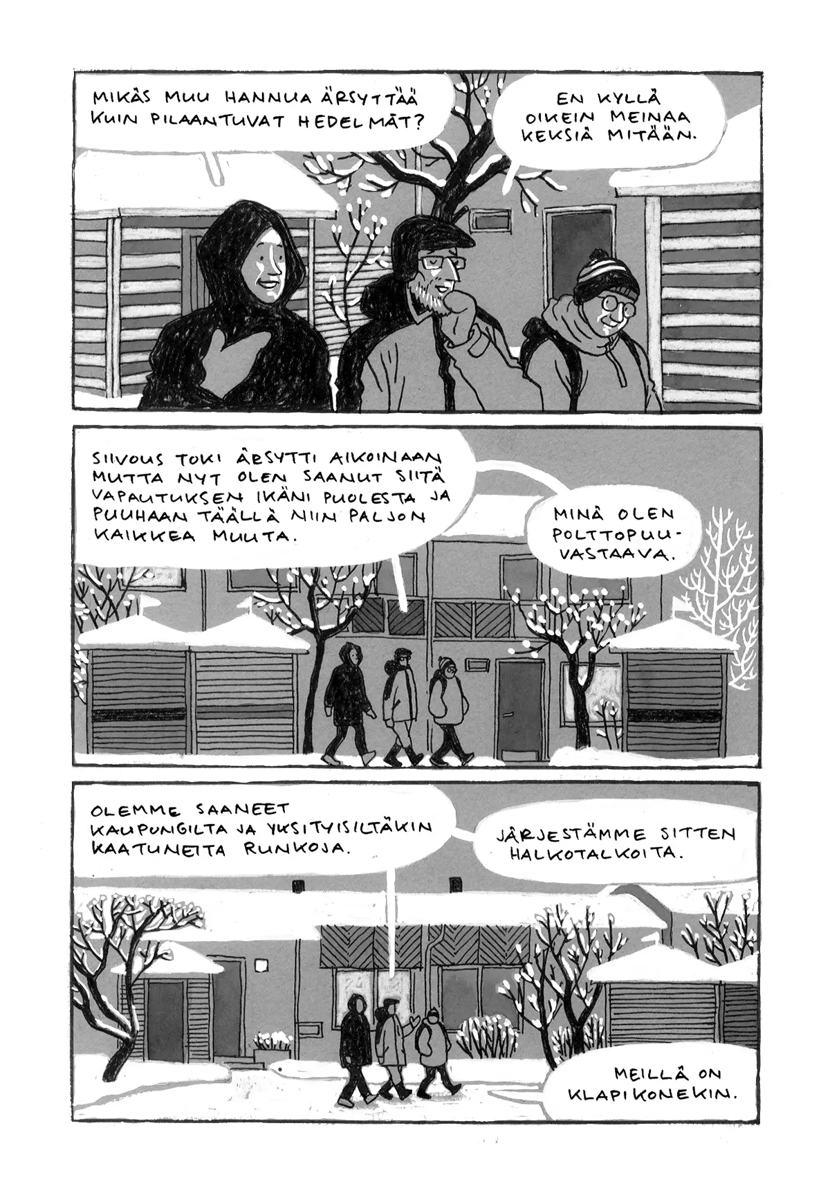 Haastatellut kotipehkulaiset: Kasmir Jolma, Hannu Oittinen, Arja Vepsäläinen.