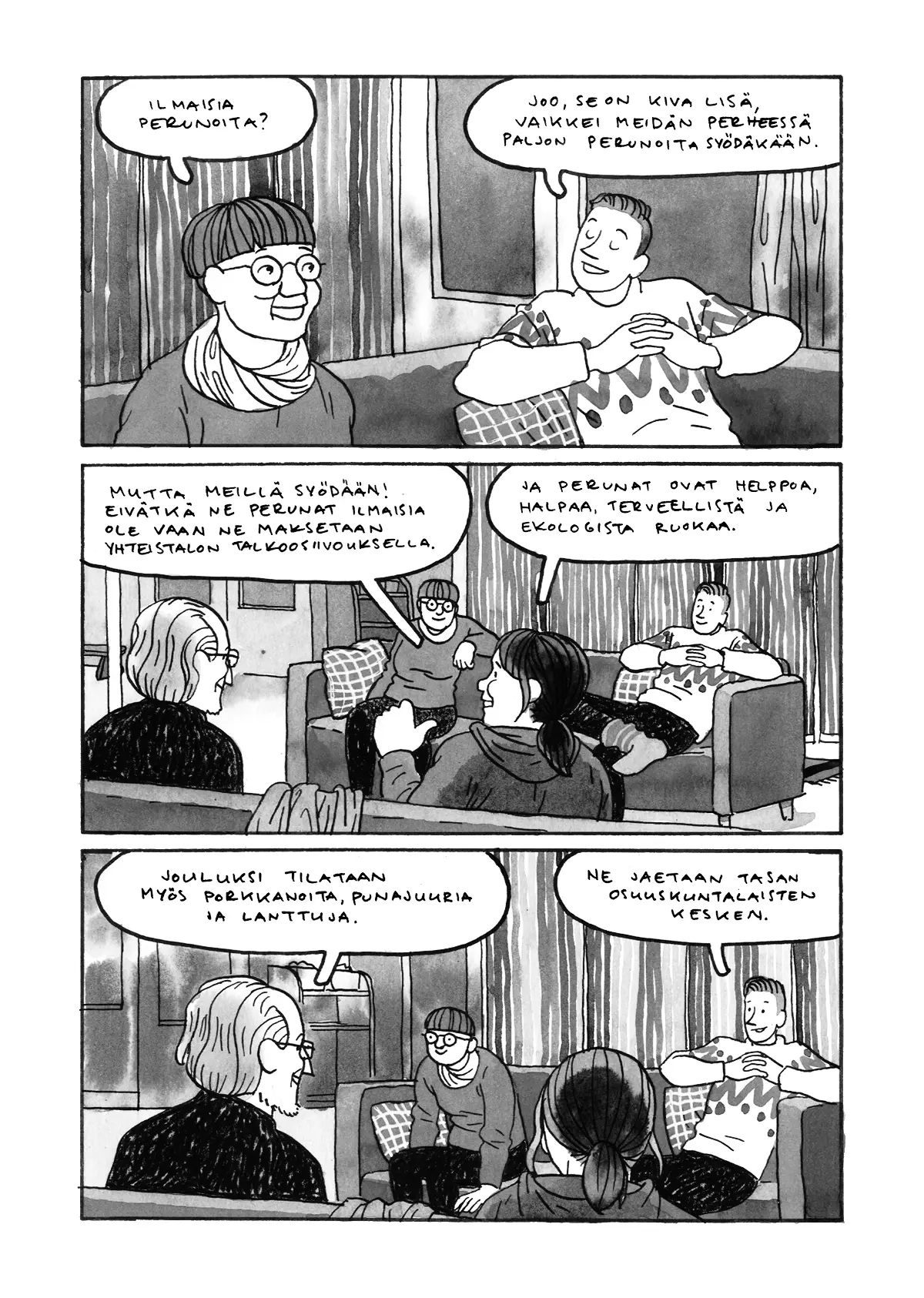 Tämä hieman etuajassa ilmestyvä jakso on vuoden 2025 viimeinen osa sarjakuvaa, joka kertoo Kotipehkun yhteisöstä. Sarjakuva jatkuu ensi vuonna.