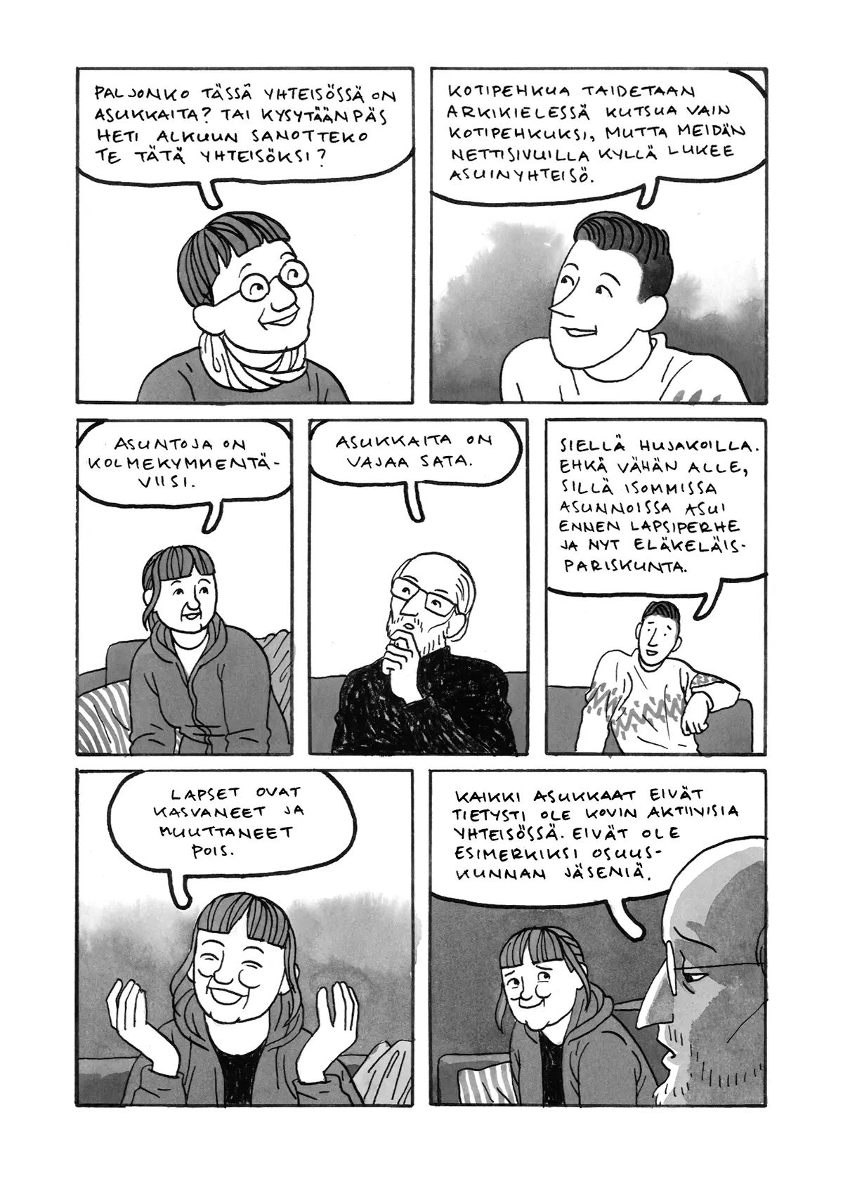 Sarjakuva perustuu haastatteluihin Kotipehkussa ja Hannu Oittisen toimittamaan kirjaan: Alussa oli ajatus – Kotipehkun historiikki 1992-2017 (plus suunnitteluvuodet 1989-1992) sekä Kiinteistölehden 10/2022 artikkeliin Kotipehkussa asutaan yhteisöllisesti.